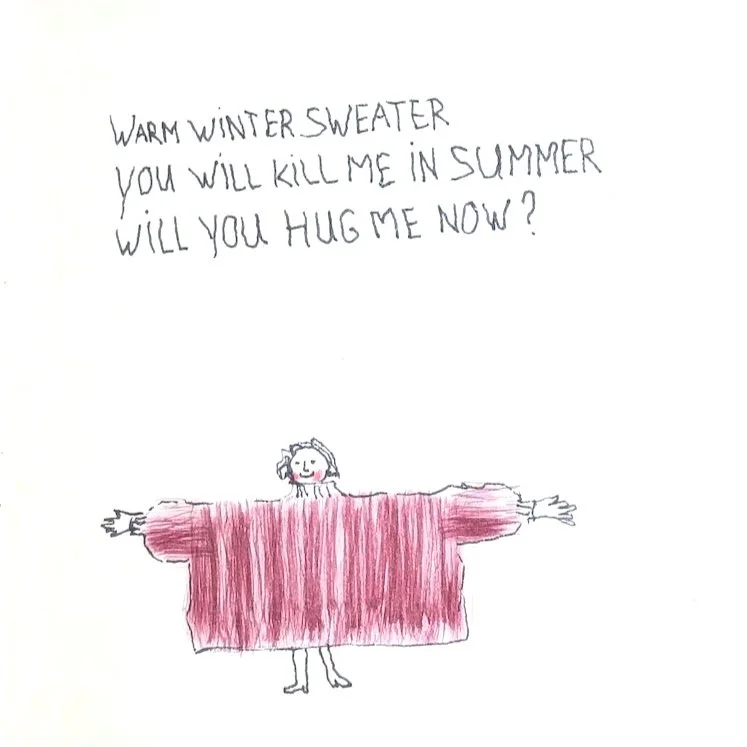 The poem was inspired by my super oversized, hand-knitted, cozy sweater